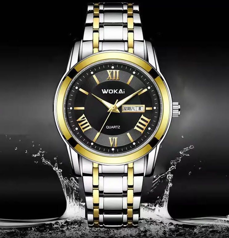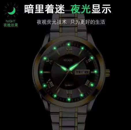 Елегантен Мъжки часовник WOKAI Водоустойчив със стоманена каишка многофункционален спортен кварцов часовник със светещ календарен ден