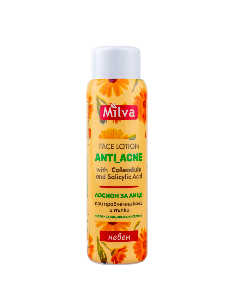 Употреба: Лосионът е предназначен за всекидневно третиране на страдаща от акне и инфекции кожа. Лосионът против акне с невен Milva е подходящ за суха и нормална кожа. Нанася се върху проблемните участъци с памучен тампон веднъж дневно.