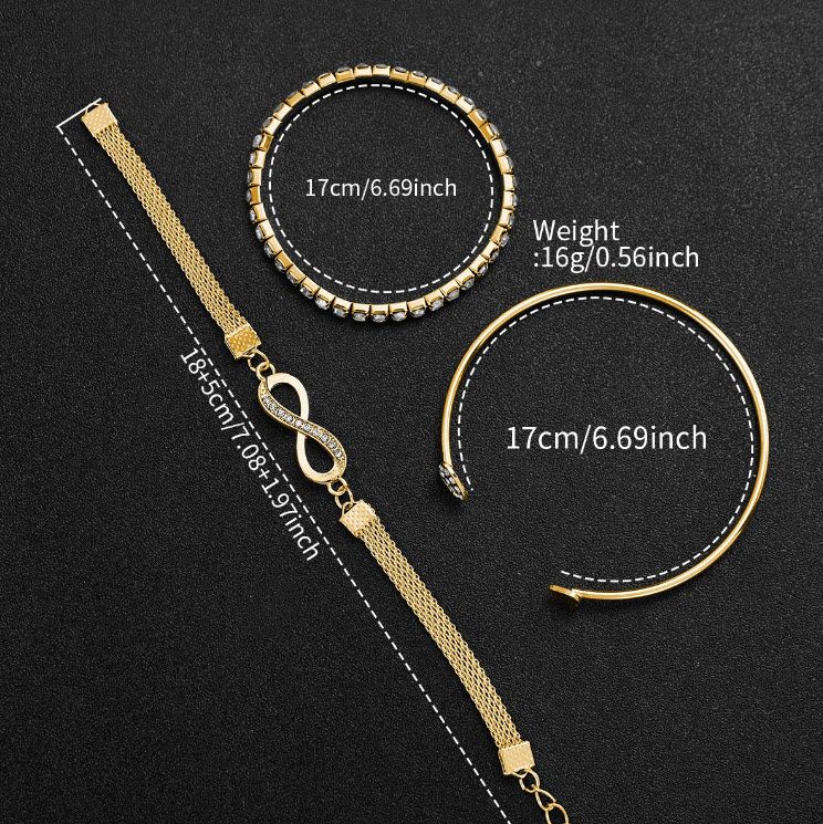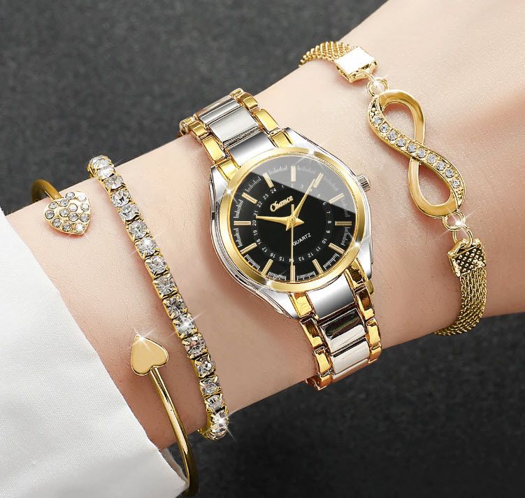 Комплект дамски часовник , 3 гривни, моден кварцов часовник метална верижка