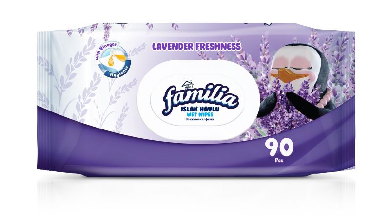 Familia Мокри кърпи, с капак, Лавандула - 90 броя
