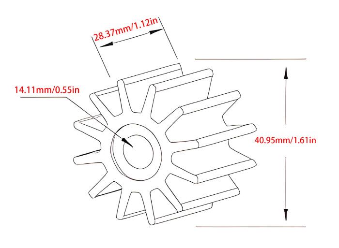 ВОДНА ПОМПА ИМПЕЛЕР за Honda 8HP 9.9 15HP 19210-ZV4-651 диаметър 40.95 мм. ос 14.11 мм. височина 28.4 мм.