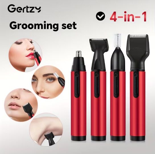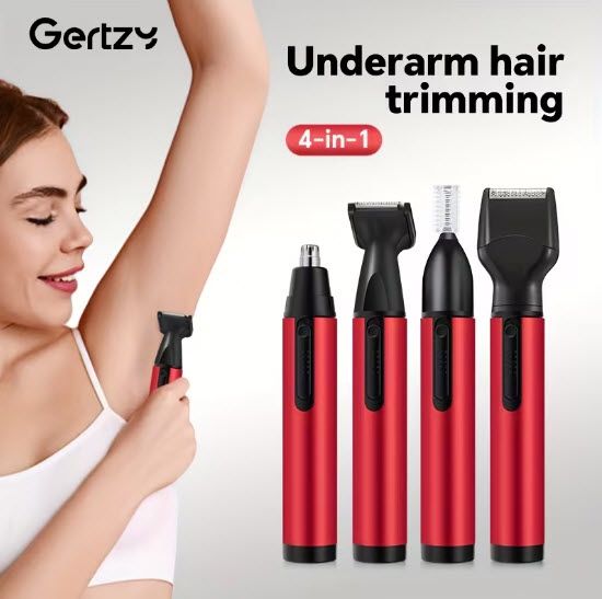 Универсален дамски електрически тример комплект 4 в 1 за обезкосмяване, включващ безболезнен инструмент за обезкосмяване, електрически тример за нос и е USB акумулаторен. Това е преносимо устройство, подходящо както за лице, така и за тяло, с лесен за отстраняване дизайн на главата.